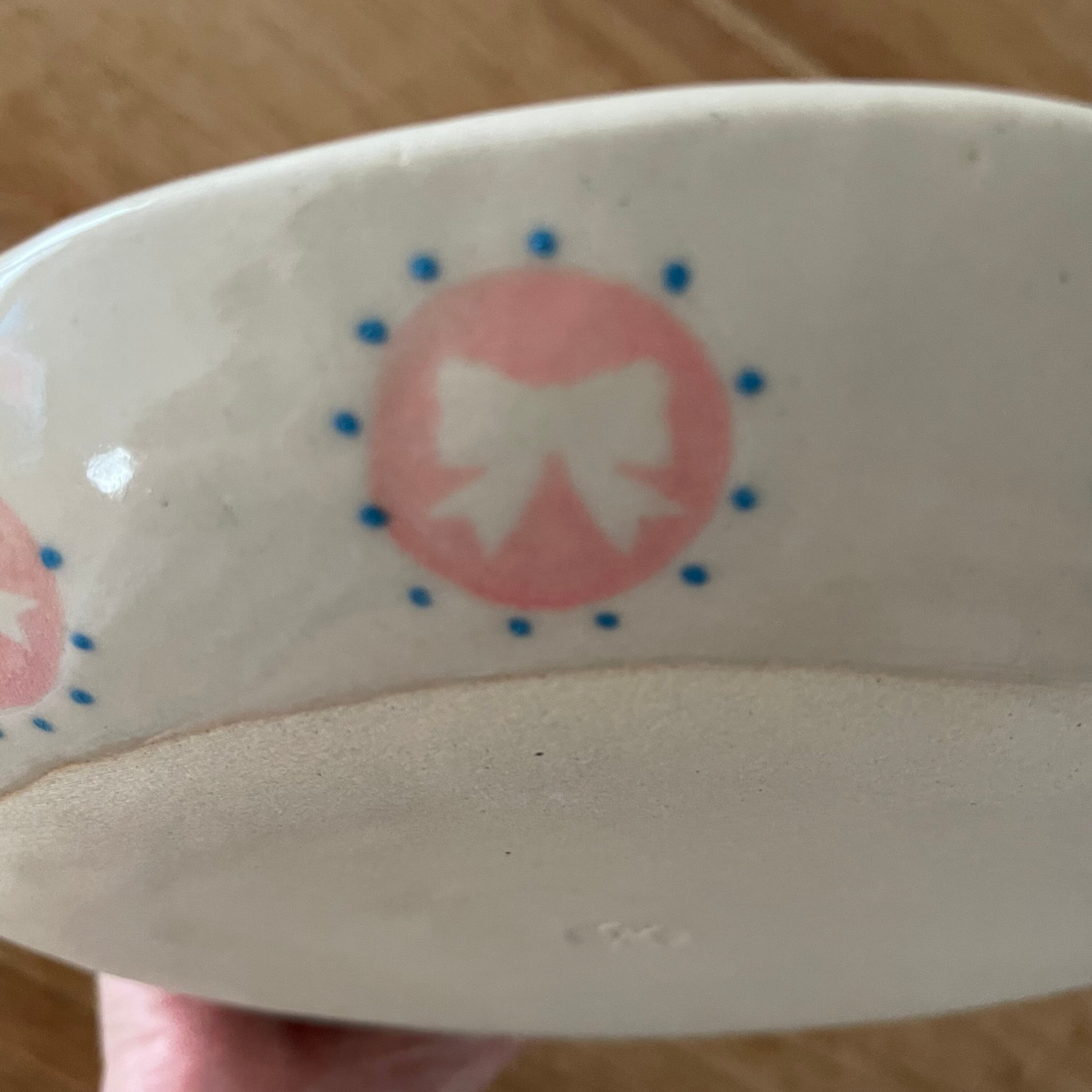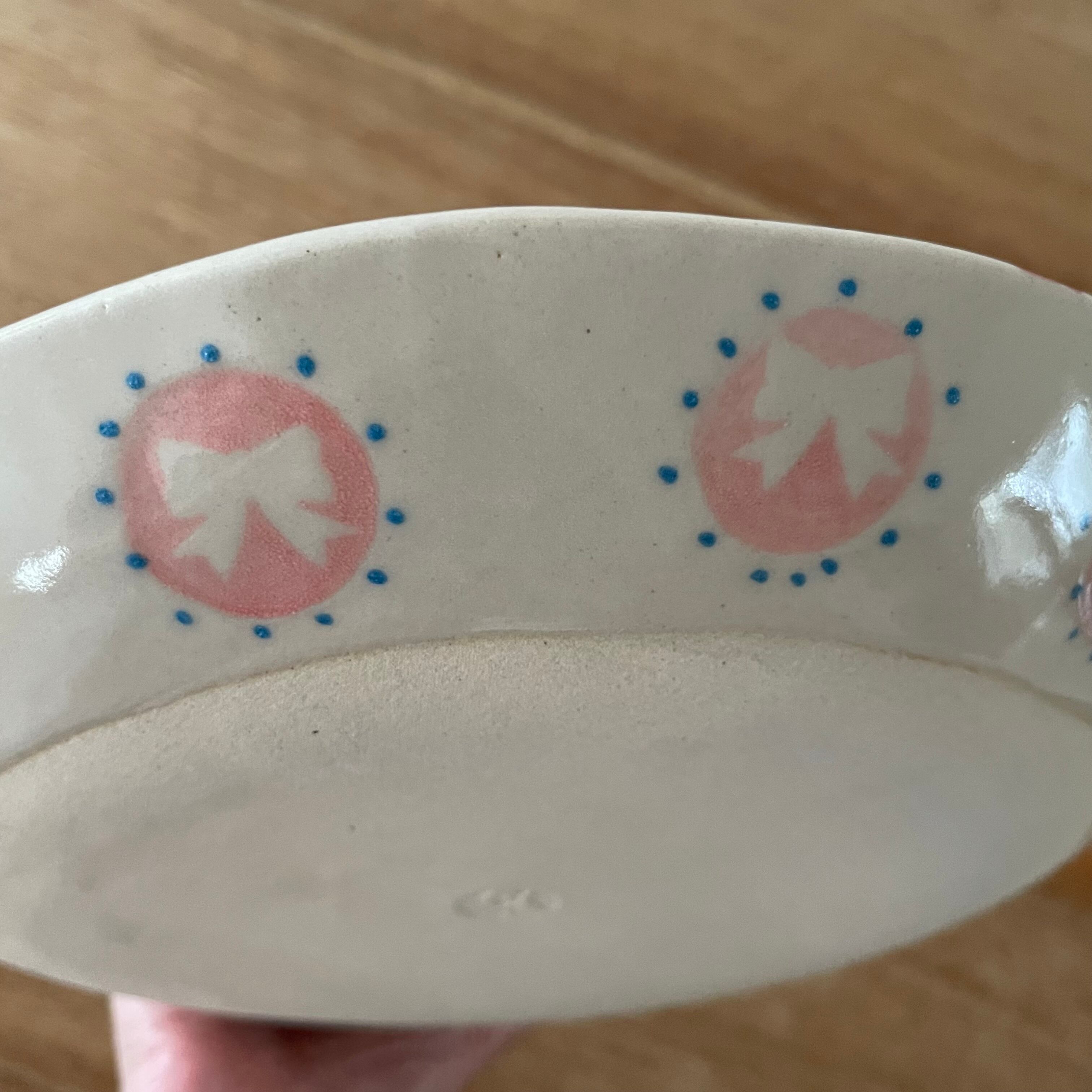 表も裏もリボンだらけの可愛いお皿です❣️