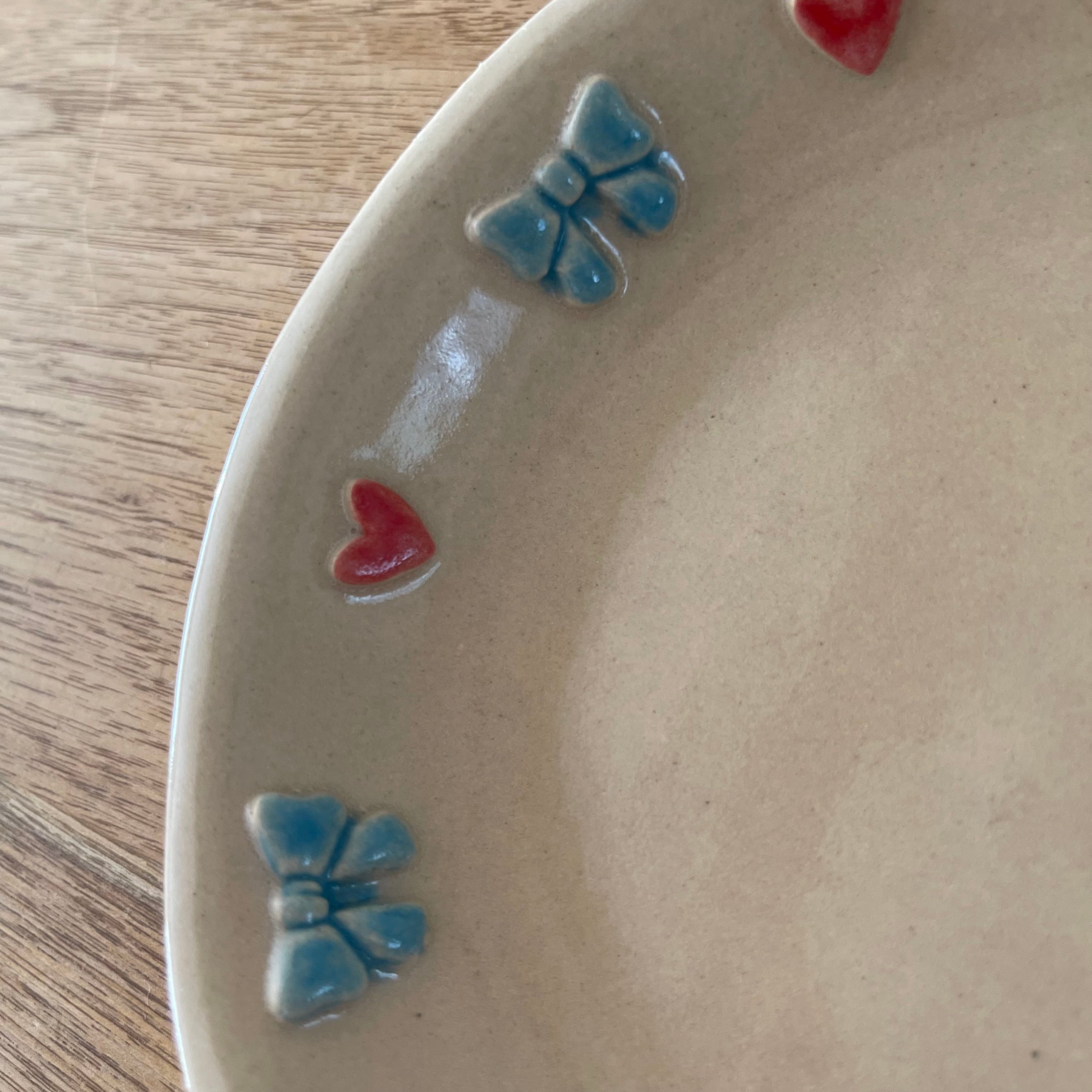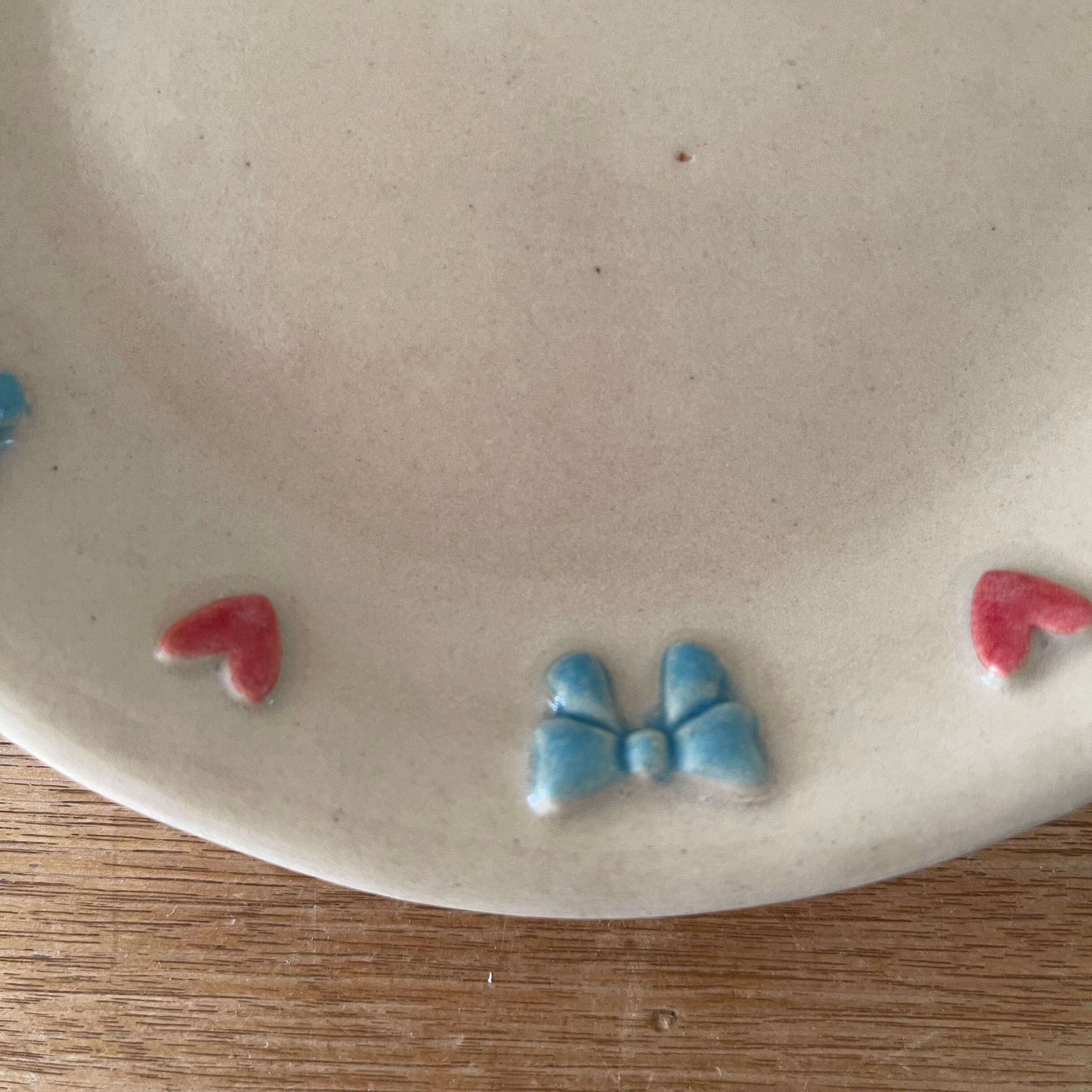 ハートとリボンがたくさん付いたかわいいお皿です❣️
