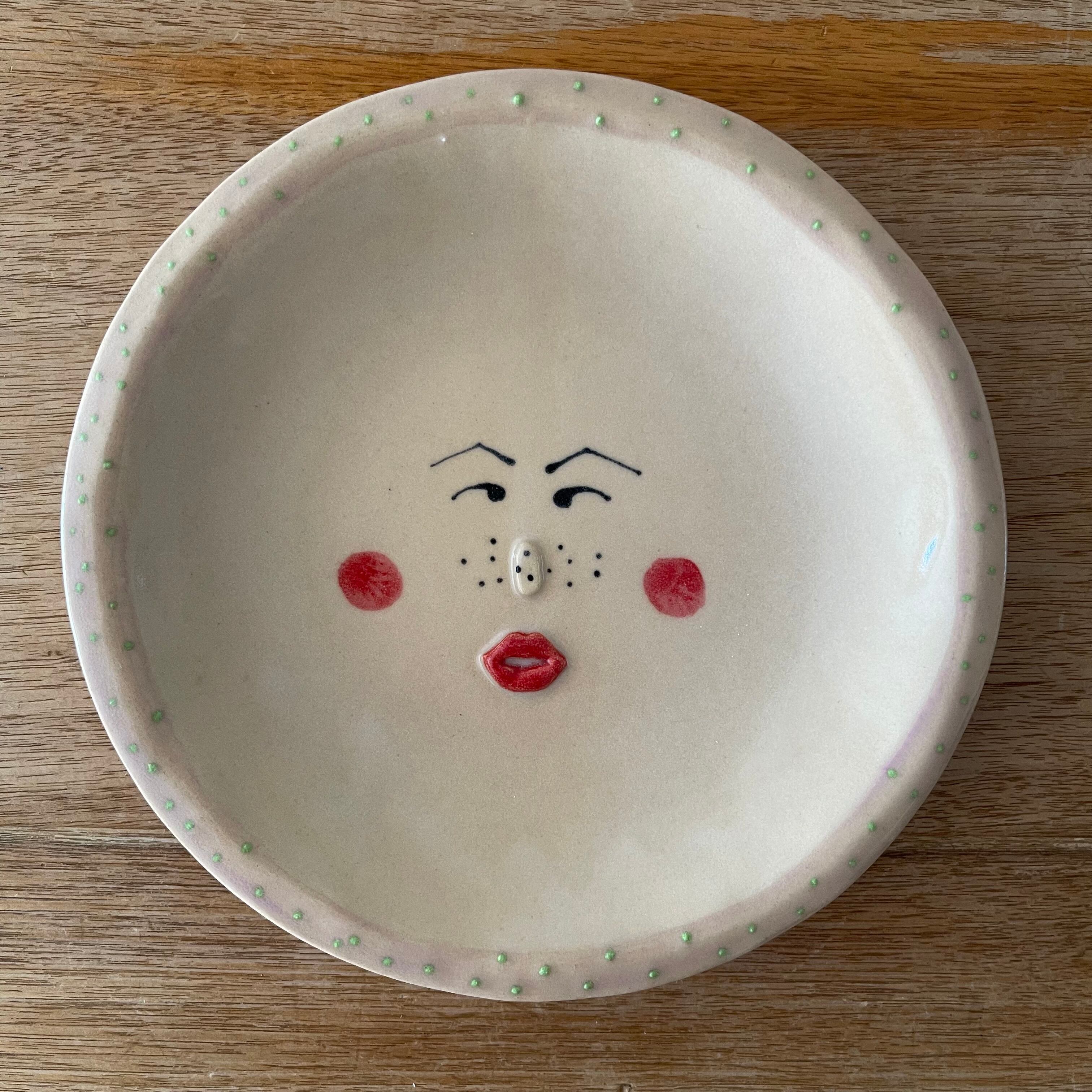 昭和な眉毛とそばかすがついたかわいいお皿です❣️