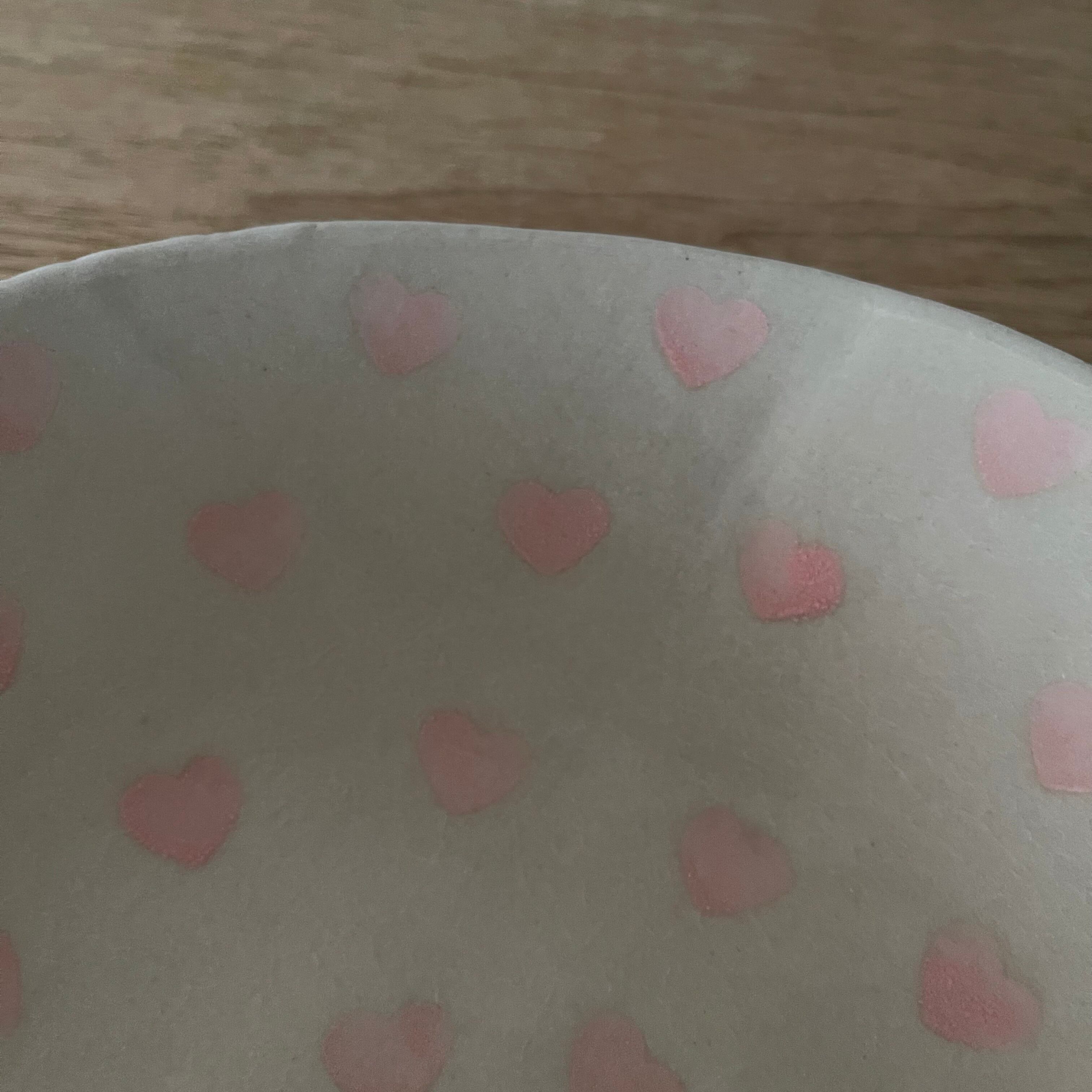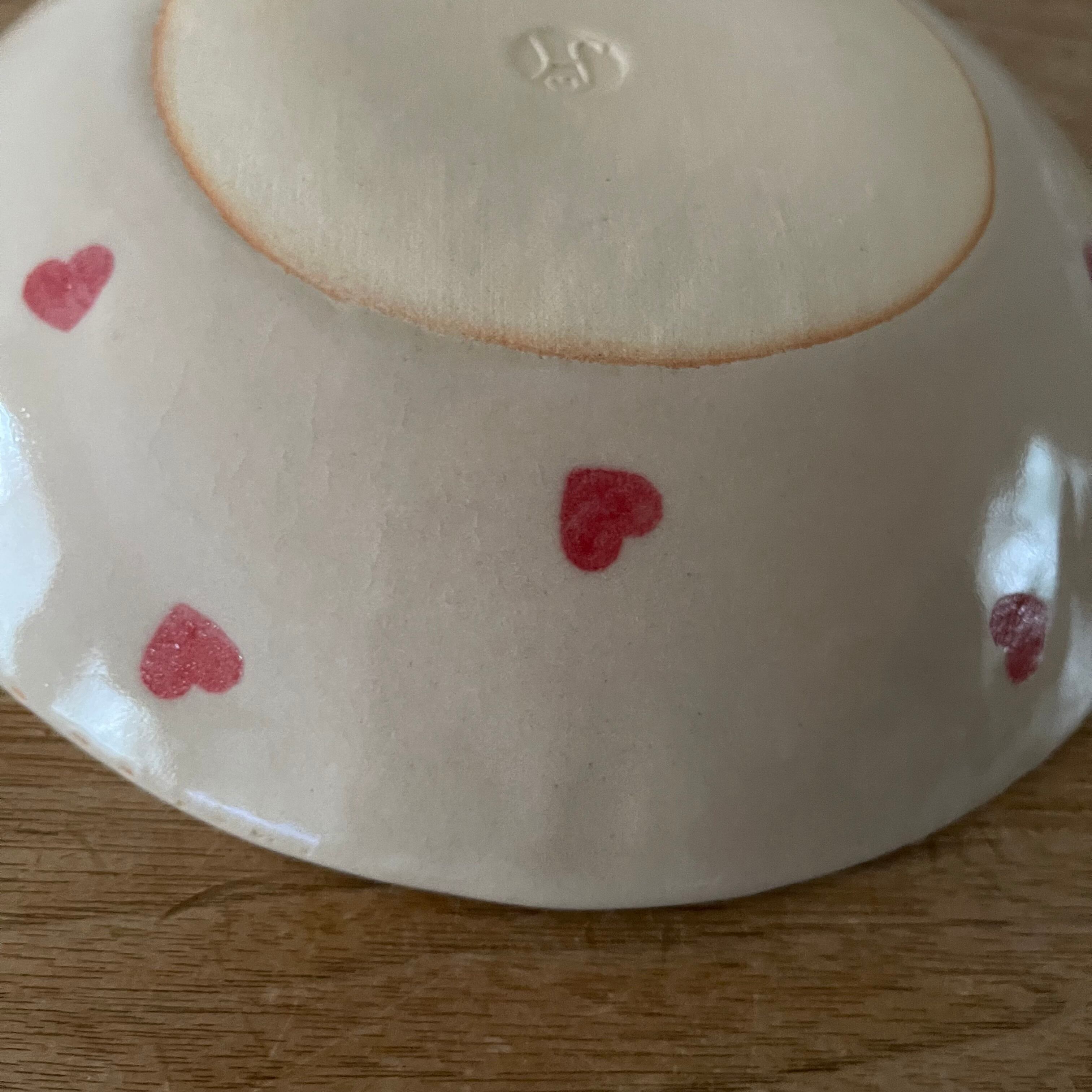 表にはピンクのハートが裏には赤いハートが付いた可愛いお皿です❣️
