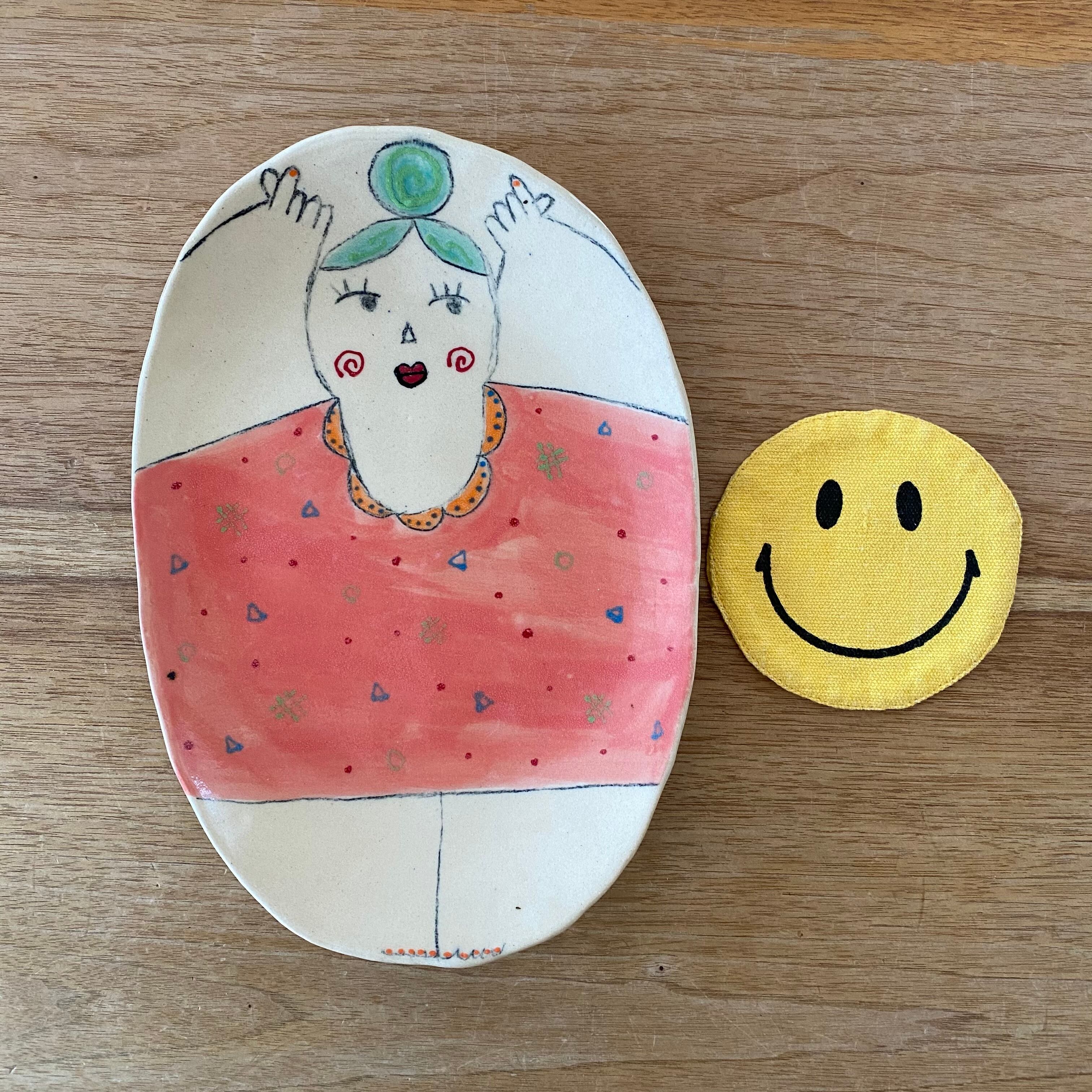 指ハート女の子お皿