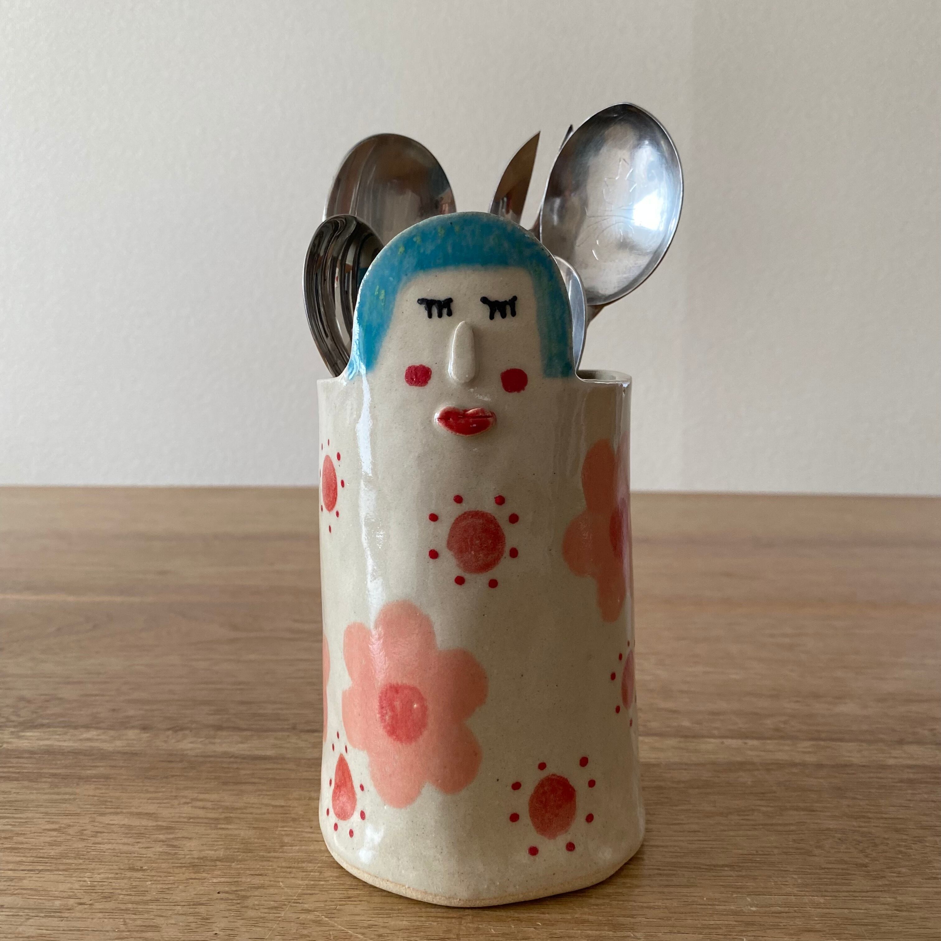 顔付きペン、箸立てお花