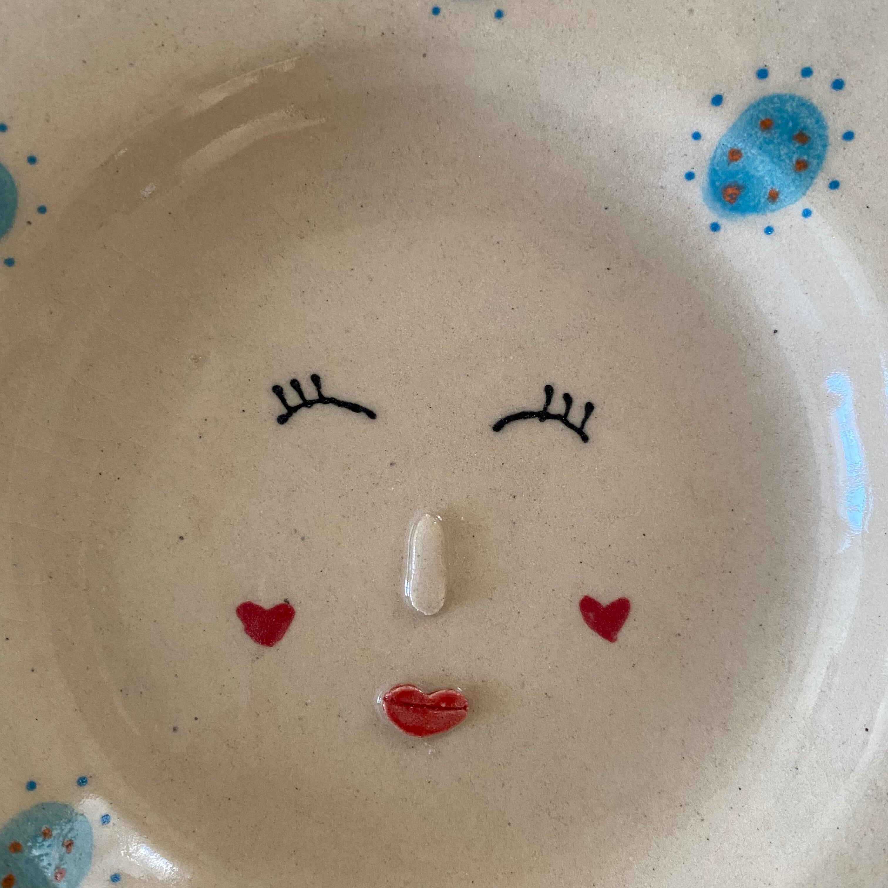 ニコニコ顔とハートのほっぺが可愛いお皿です❣️