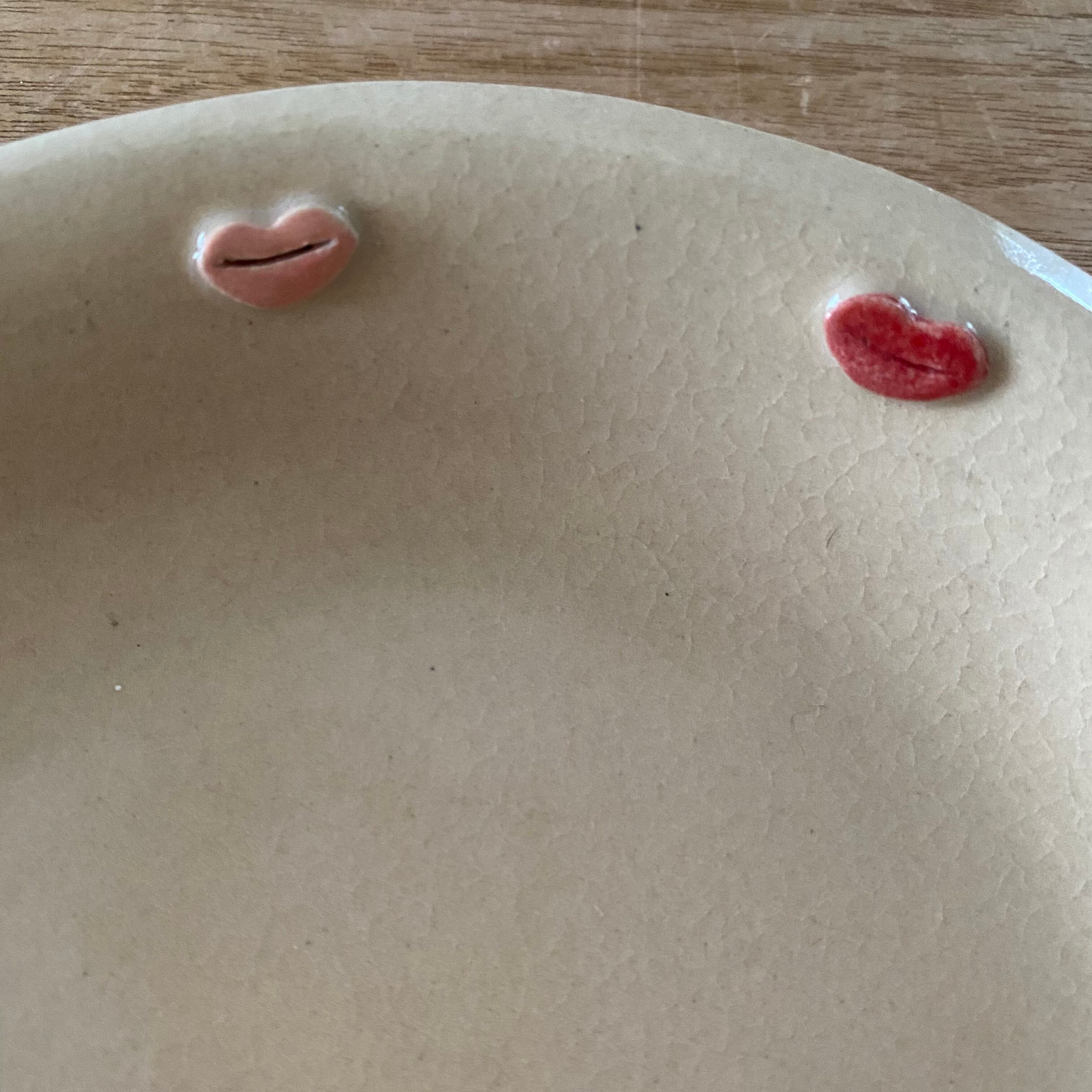 赤とピンクの唇が可愛いお皿です❣️