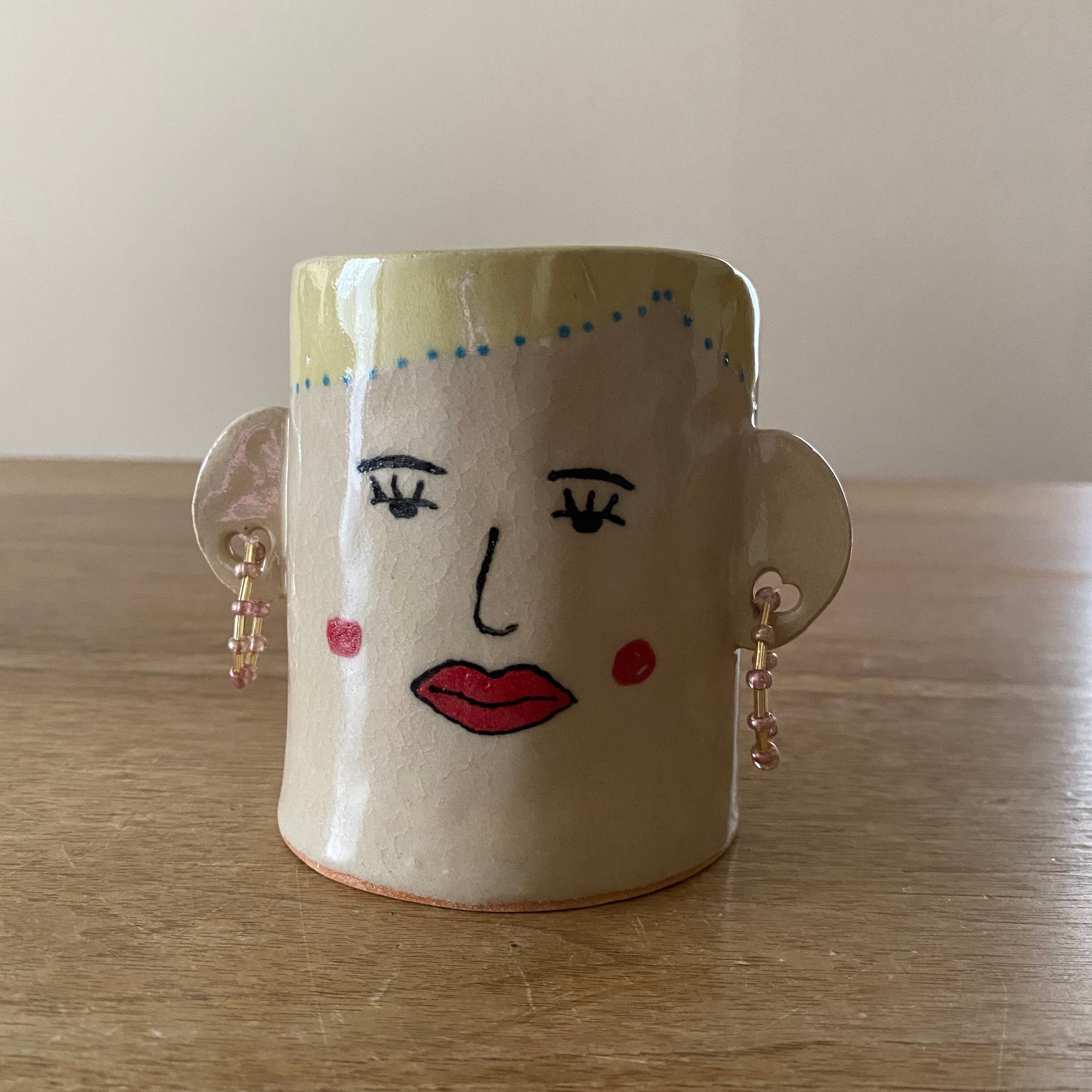 ピアスをしてる可愛いペン立てです❣️