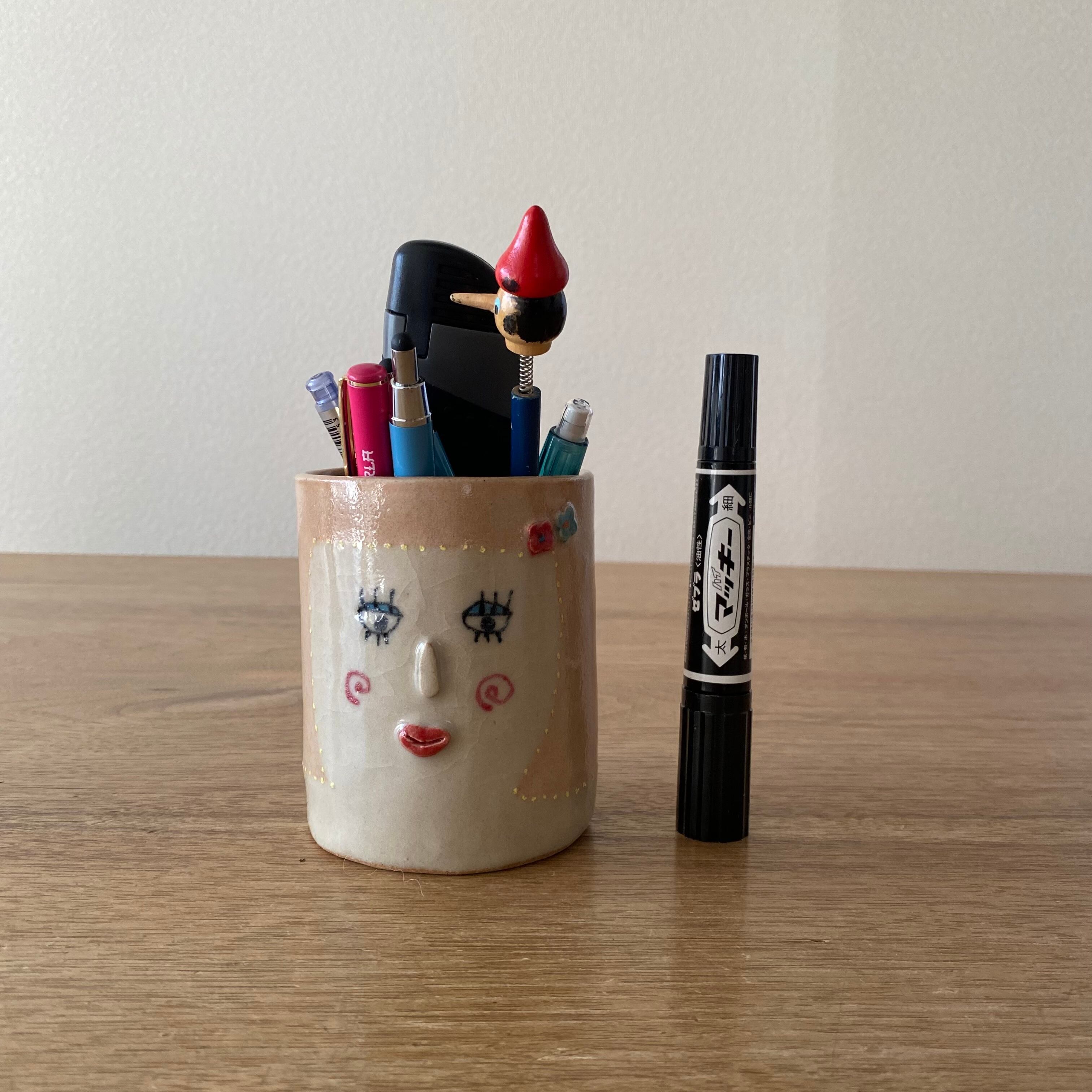 青いアイシャドウが可愛いペン立てです❣️