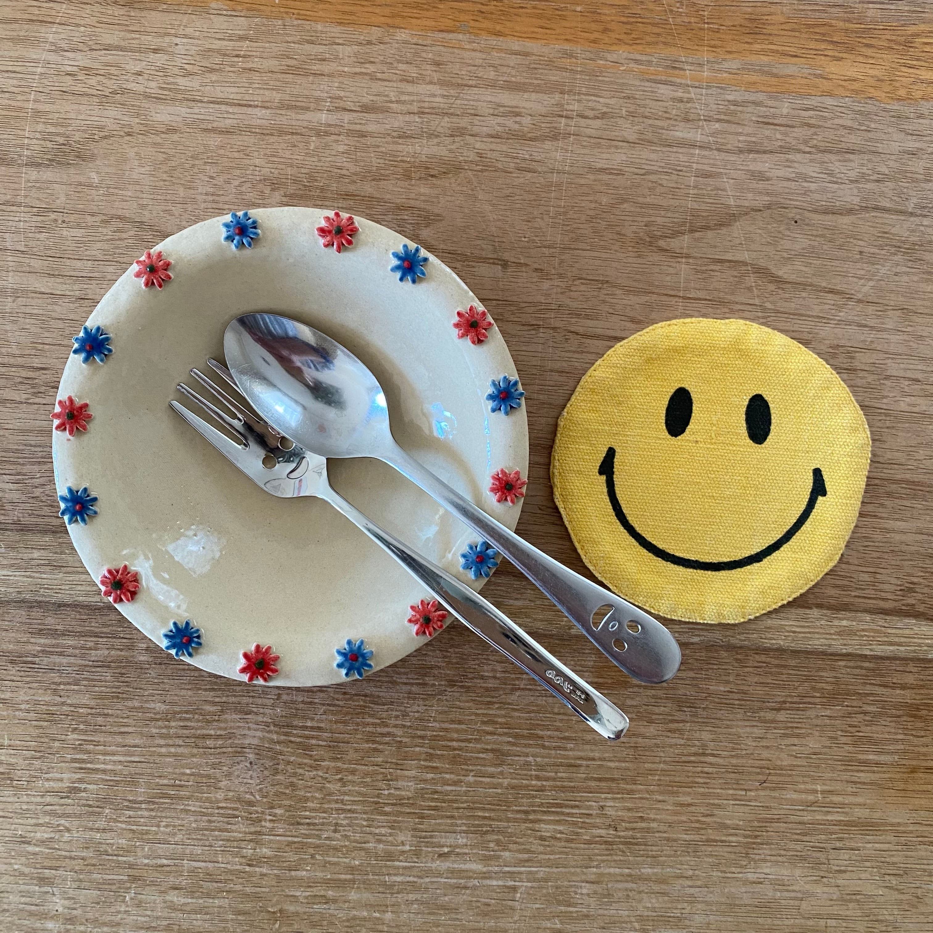 赤と青のお花が可愛いお皿です❣️
