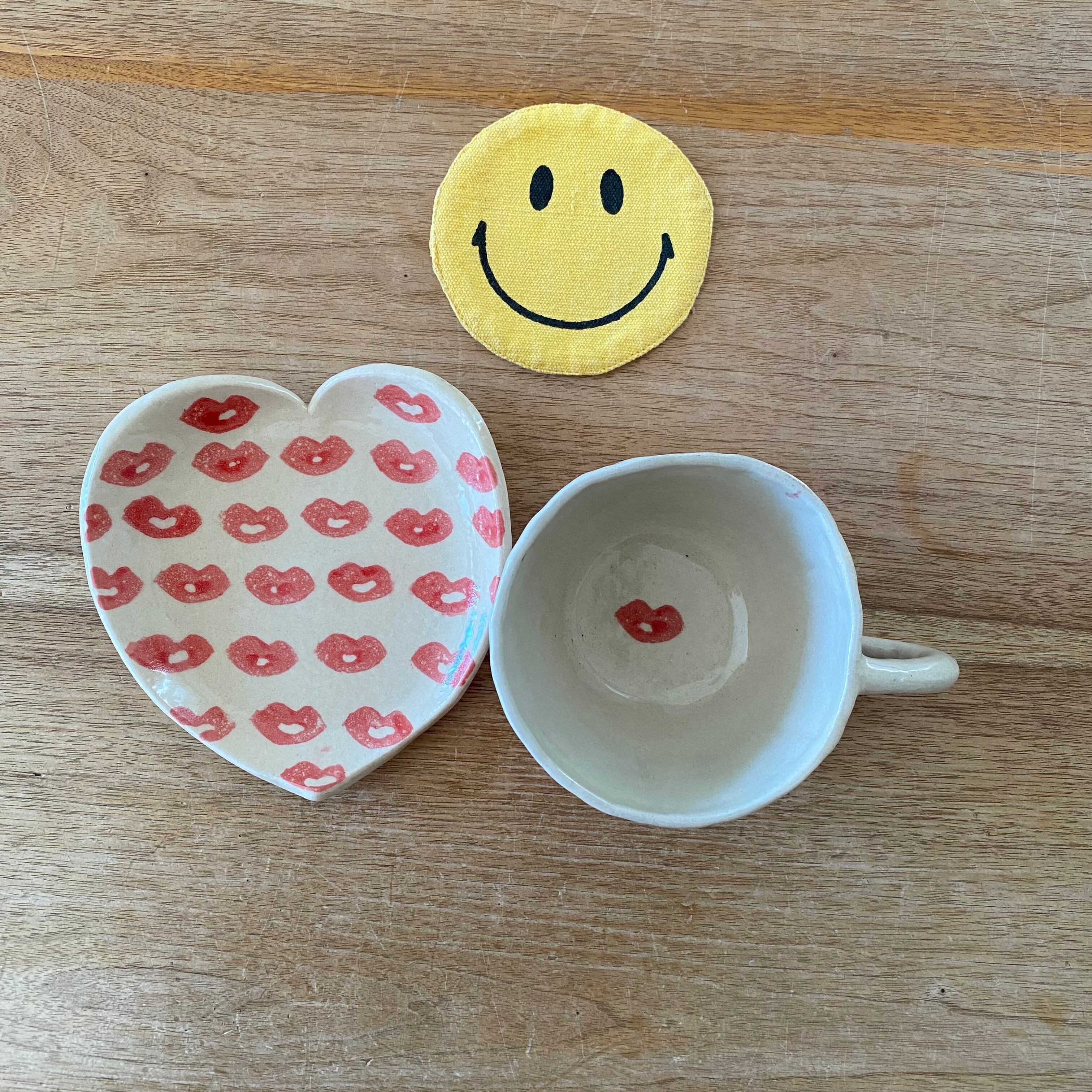 ぷっくり唇が沢山お揃いのカップとお皿です❣️