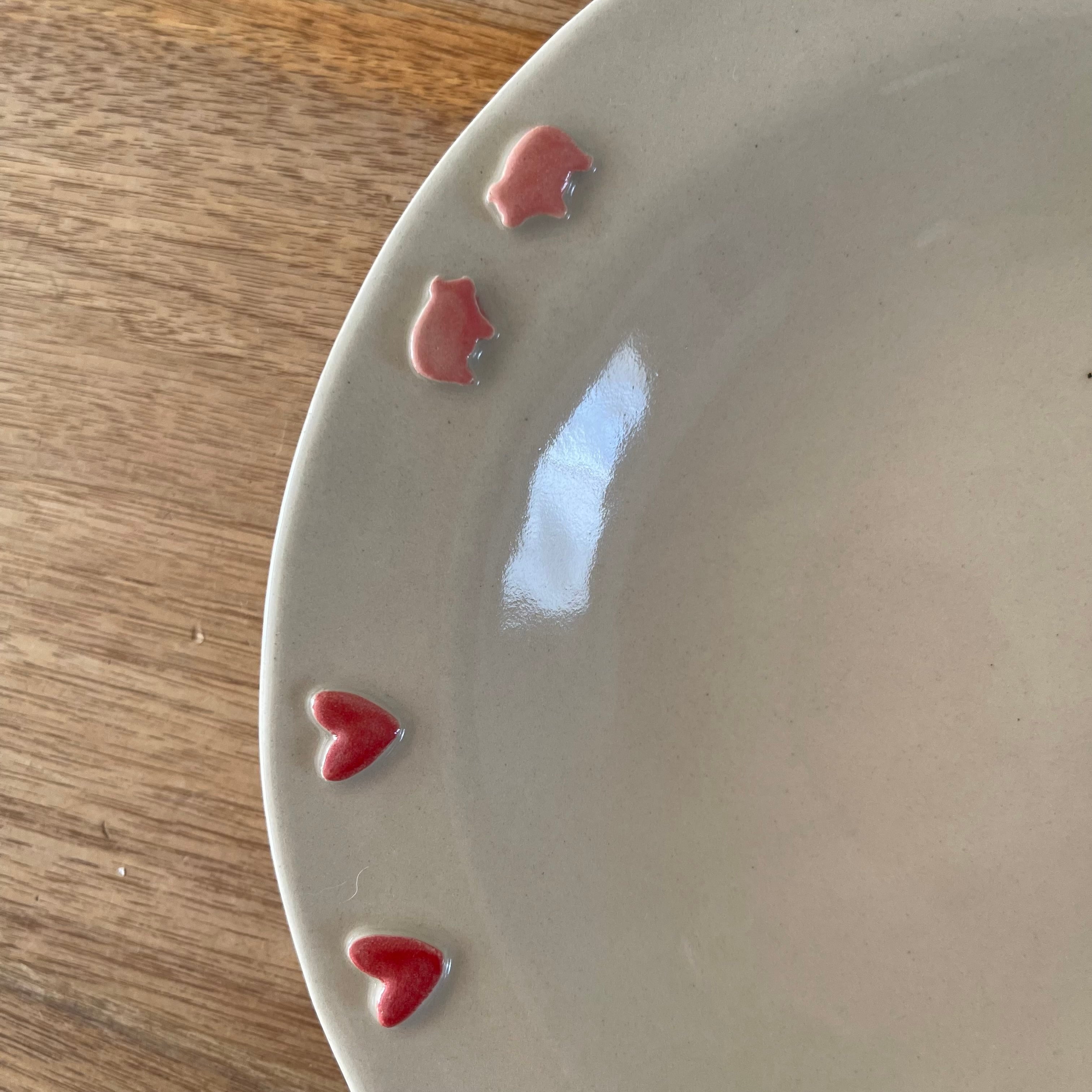 ブタちゃんとハートが付いた可愛いお皿です❣️