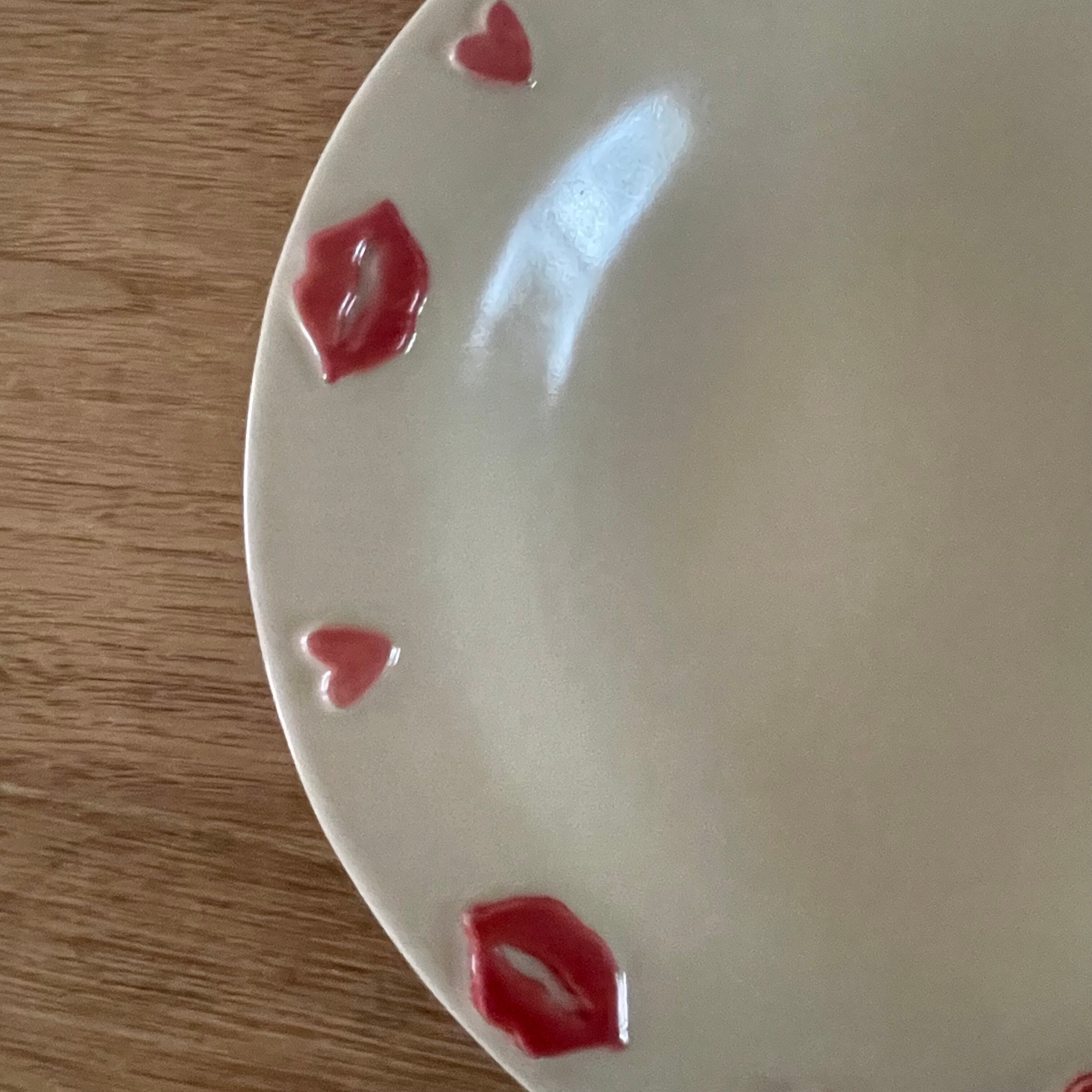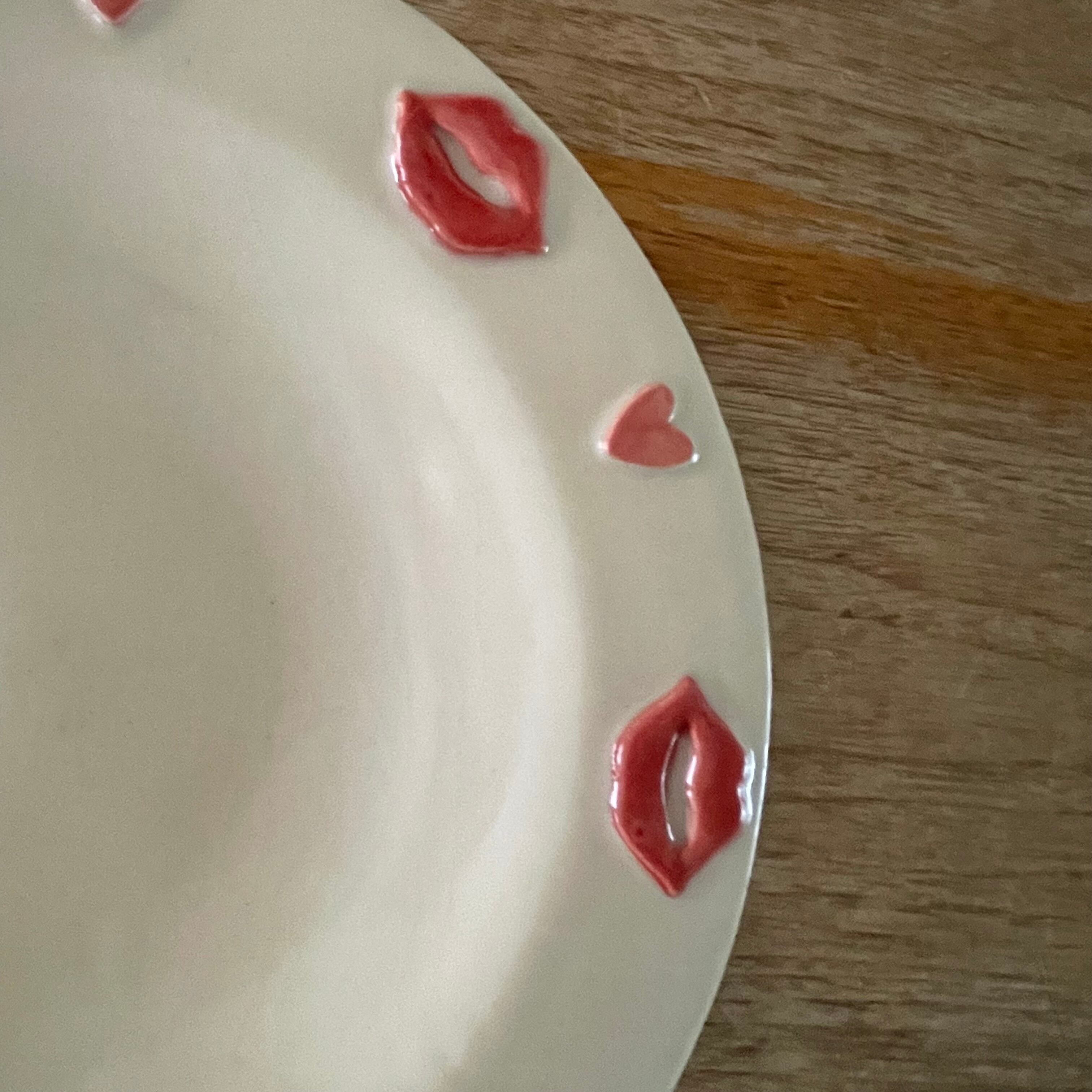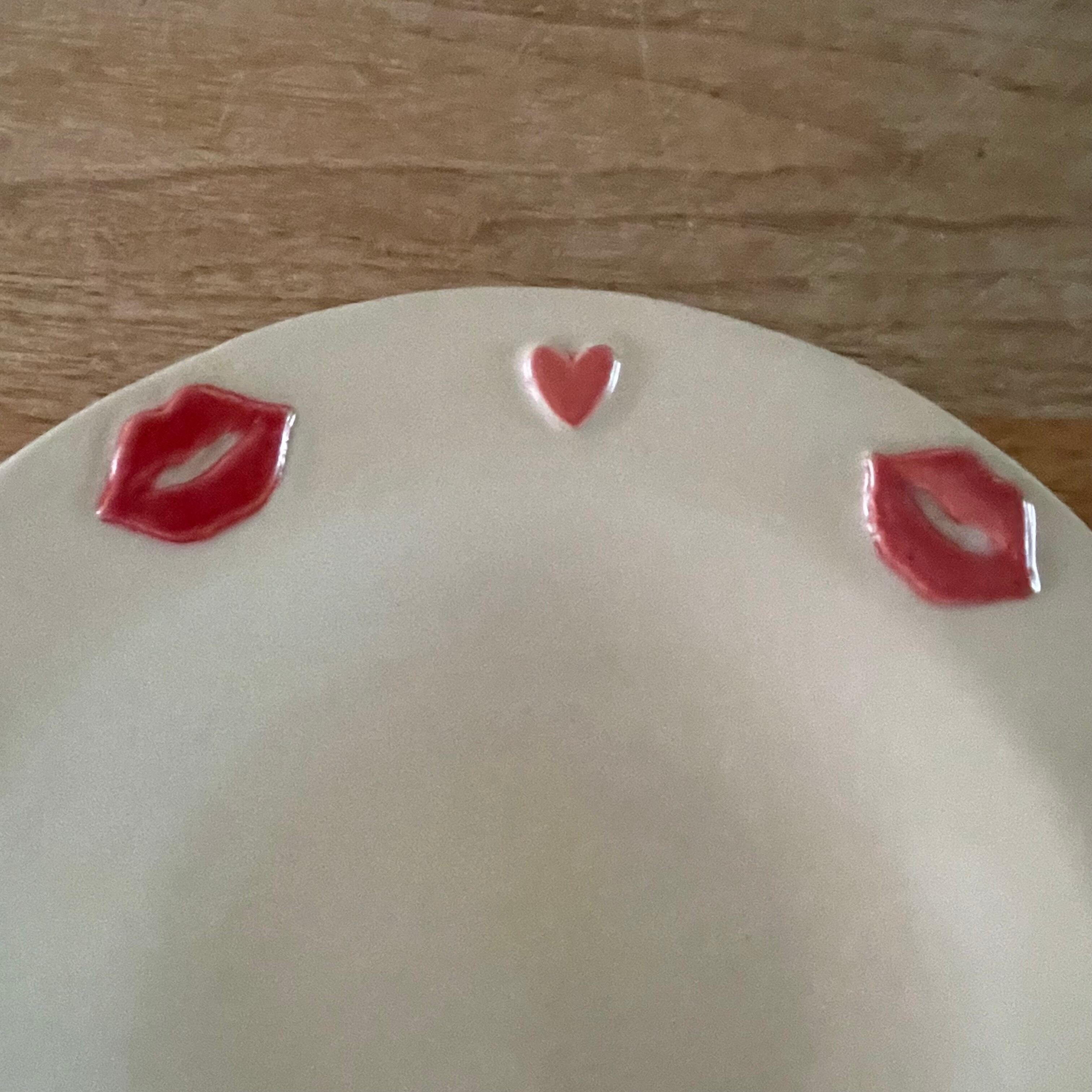 くちびるとハートがたくさん付いた可愛いお皿です❣️