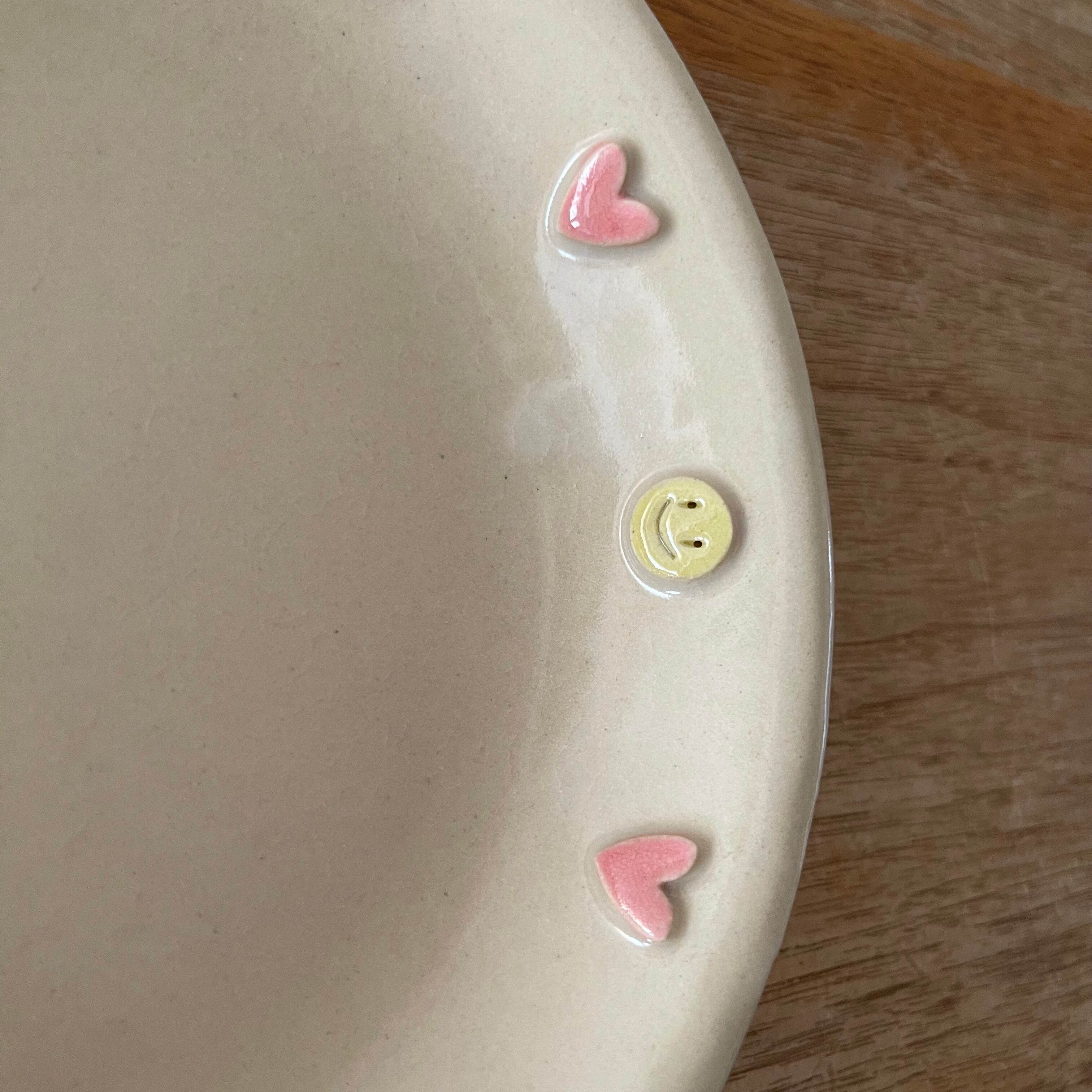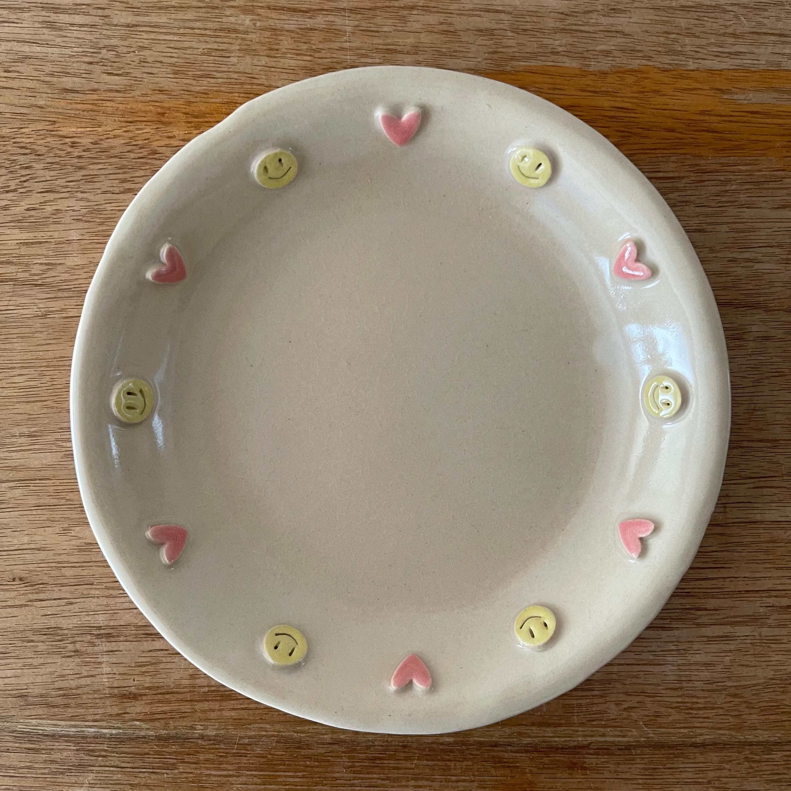 ハートとニコちゃんが沢山付いてる可愛いお皿です❣️